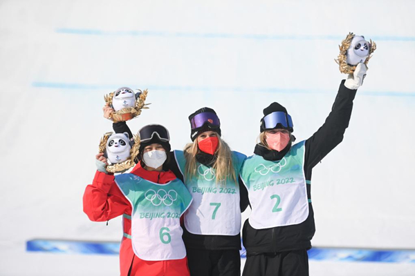Kokomo Murase do Jap?o (à esquerda), Anna Gasser da áustria (ao centro)e Zoi Sadowski Synnott da Nova Zelandia (à direita)