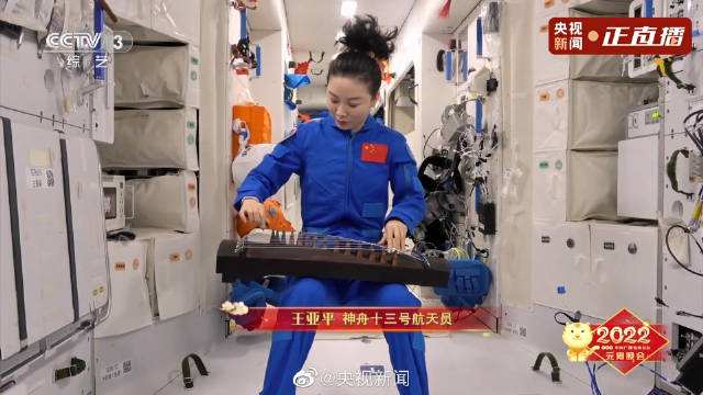 O show espacial foi compartilhado por meio de um vídeo divulgado em uma gala anual da TV para a celebra??o do festival. No vídeo, Wang foi vista flutuando no módulo espacial enquanto tocava um guzheng, ou cítara chinesa.