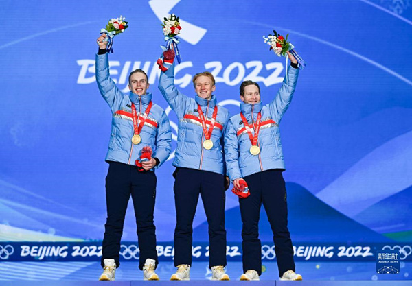 A equipe norueguesa, composta por Hallgeir Engebraaten, Peder Kongshaug, Sverre Lunde Pedersen, marcou três minutos e 38,08 segundos para a vitória, 2,38 segundos mais rápido que o COR.