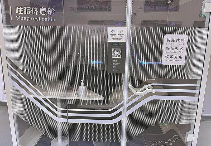 Cabine de alta tecnologia no centro de mídia de Beijing para uso da imprensa.
