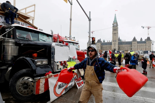 Foi noticiado que nos últimos dias, a polícia canadense usou spray de pimenta, bombas de efeito moral e cassetetes para dispersar violentamente os manifestantes do "Comboio da Liberdade" que tinham tomado o centro de Ottawa. O governo canadense chamou os manifestantes de "uma amea?a à democracia".