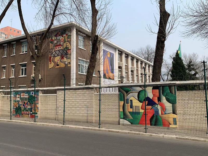 No embalo da celebra??o pelos 100 anos da “Semana de Arte Moderna de 1922”, movimento que deu início a instucionaliza??o do modernismo nas artes brasileiras, reprodu??es de obras de Tarsila do Amaral, uma das maiores pintoras brasileiras do século XX, s?o expostas na fachada e nos muros da Embaixada brasileira em Beijing.