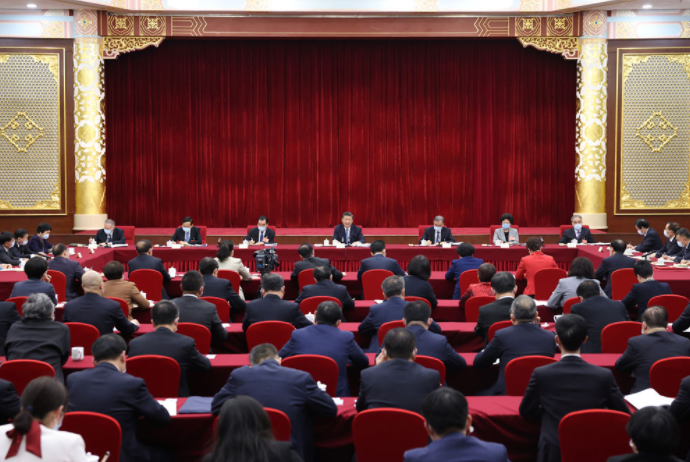 O presidente chinês Xi Jinping conversou com os assessores políticos na quinta sess?o do 13o Comitê Nacional da Conferência Consultiva Política do Povo Chinês (CCPPCh) em 6 de mar?o de 2022.