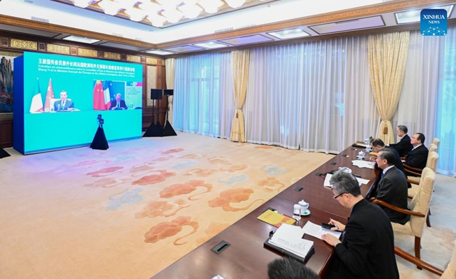 O conselheiro de Estado chinês e ministro das Rela??es Exteriores, Wang Yi, trocou impress?es na quinta-feira sobre a situa??o na Ucrania, respetivamente, com os homólogos francês e italiano, via videochamada.