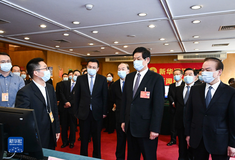 O chefe do Legislativo da China, Li Zhanshu, visitou os jornalistas que cobriram a quinta sess?o da 13a Assembleia Popular Nacional (APN).