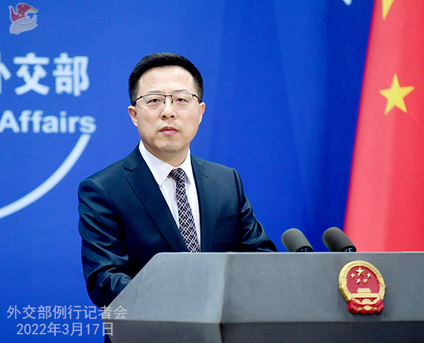 Zhao disse em uma entrevista coletiva que a China promoveu negocia??es de paz e se esfor?a para resolver a crise pacificamente, e que continuará desempenhando um papel construtivo na quest?o.