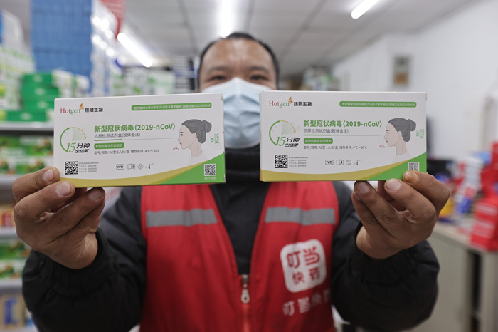 Até quarta-feira, a Administra??o Nacional de Produtos Médicos aprovou 12 produtos de autoteste de antígeno de COVID-19 de farmacêuticas como a Guangzhou Wondfo Biotech Co., Ltd. e a Beijing Jinwofu Bioengineering Technology Co., Ltd.