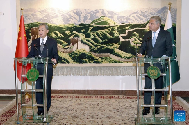 Falando em uma coletiva de imprensa conjunta com o ministro das Rela??es Exteriores do Paquist?o, Shah Mahmood Qureshi, Wang disse que estava realizando sua primeira visita ao Paquist?o desde o início da pandemia, tendo mantido um diálogo extenso com Qureshi sobre os la?os bilaterais.