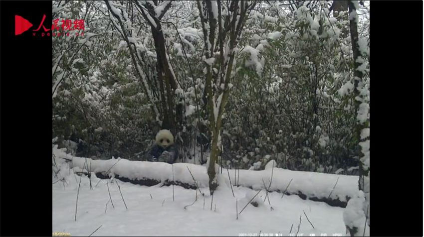 No vídeo, pode-se ver os pandas gigantes selvagens, como uma "Bing Dwen Dwen" da realidade.