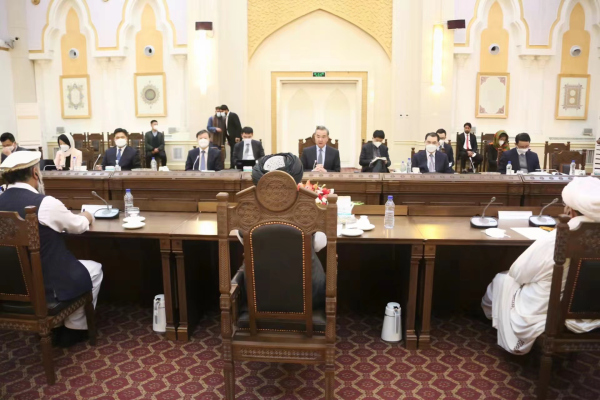 Durante uma reuni?o com Amir Khan Muttaqi, ministro interino das Rela??es Exteriores do governo interino do Talib? afeg?o, Wang disse que a China respeita a independência, soberania e integridade territorial do Afeganist?o, respeita a escolha independente feita pelo povo afeg?o e respeita as cren?as religiosas e costumes nacionais do Afeganist?o.