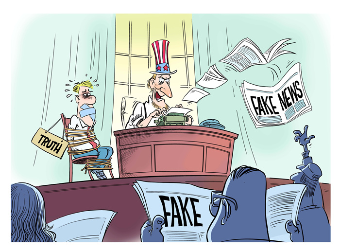 Espalhar mentiras é um ato que n?o pode encobrir as próprias responsabilidades dos EUA, expondo a sua real inten??o de tirar proveito da crise.