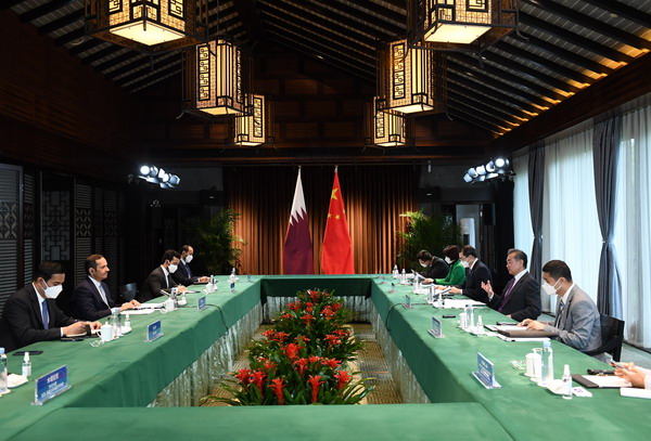 O conselheiro de Estado e ministro das Rela??es Exteriores da China, Wang Yi, reuniu-se na quarta-feira com o vice-primeiro-ministro e o ministro dos Assuntos Exteriores do Qatar, Xeque Mohammed bin Abdulrahman Al Thani, em Tunxi, na Província de Anhui, leste da China.