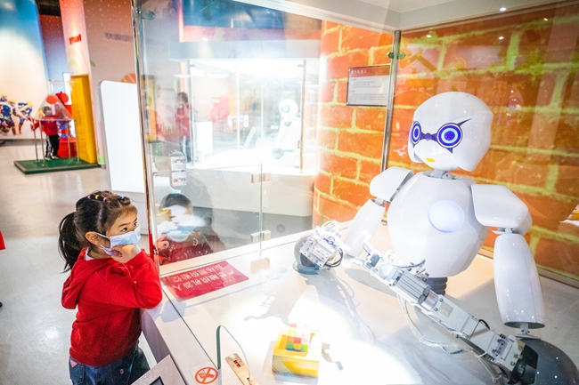Crian?as visitam o Museu de Ciências de Bijie, província de Guizhou, sudoeste da China, em 10 de abril de 2022. (Foto: Luo Dafu/Diário do Povo Online)