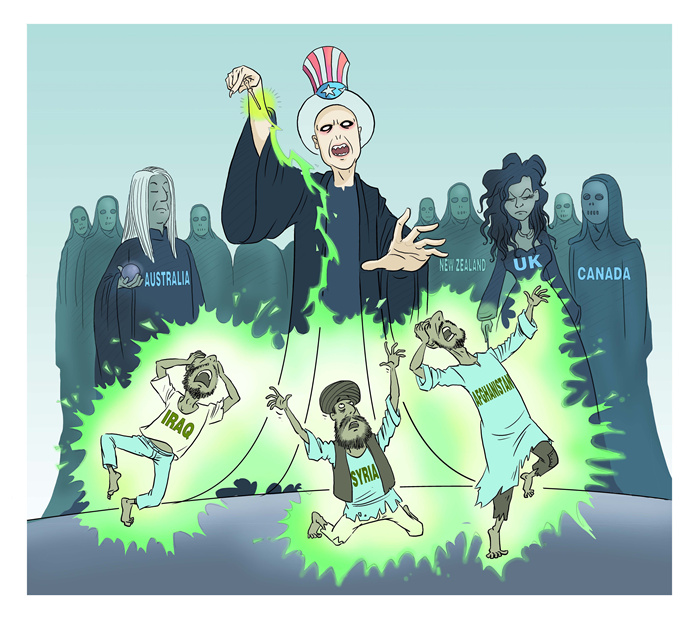 Desde a funda??o da República Popular da China, os Estados Unidos demonstram interesse em interferir nos assuntos internos de outros países e subverter seus regimes, recorrendo à prática do hegemonismo. Este "Voldemort" que sabota a paz e a estabilidade mundiais recorreu à interferência em elei??es, incita??o de distúrbios, subvers?o de regimes e fabrica??o de guerras à escala global.