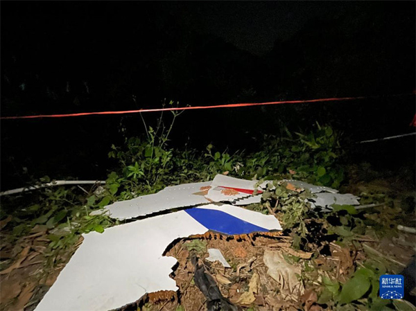 O avi?o finalmente caiu em uma área perto da aldeia Molang, vila de Langnan, distrito de Tengxian, cidade de Wuzhou, Regi?o Aut?noma da Etnia Zhuang de Guangxi, sul da China, matando todos os 123 passageiros e nove tripulantes a bordo.