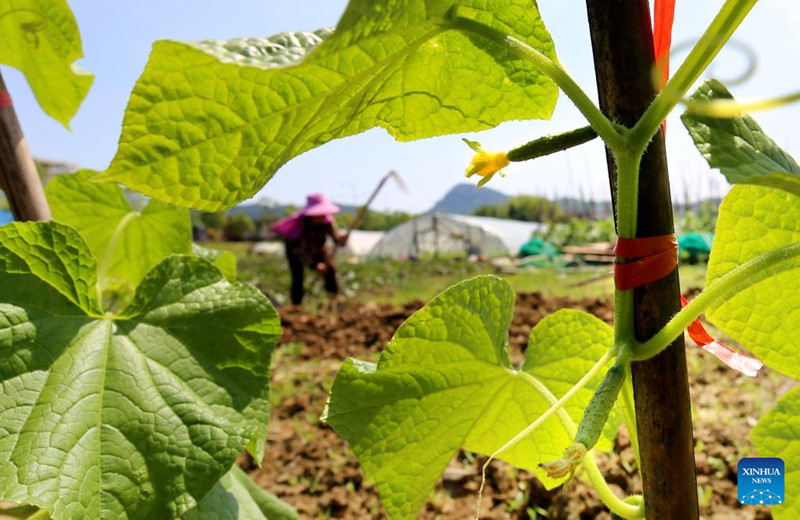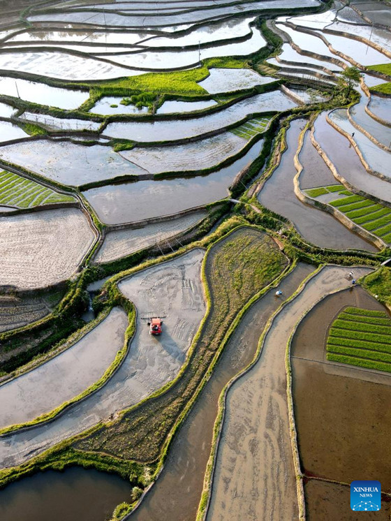 Camponês trabalha no terreno de cultivo da vila de Shuangxi, distrito de Jing’na, cidade de Yichun, província de Jiangxi, leste do país, em 4 de maio de 2022. (Foto: Xu Zhongting/Xinhua)