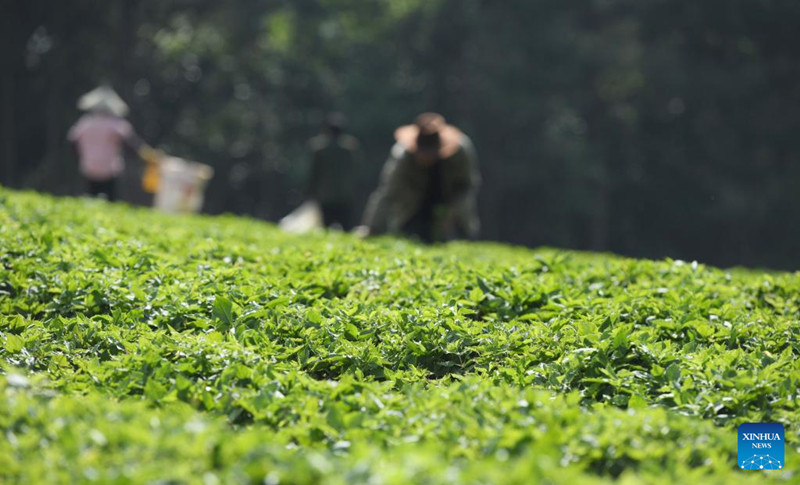 Camponeses trabalhando no terreno de cultivo na cidade de Chaohu, província de Anhui, leste no país, em 4 de maio de 2022. (Foto: Ma Fengcheng/Xinhua)