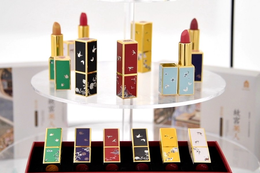 Batons temáticos da Cidade Proibida da Bloomage Biotechnology Corporation Limited em exposi??o. (Foto: Chen Hao/Xinhua)