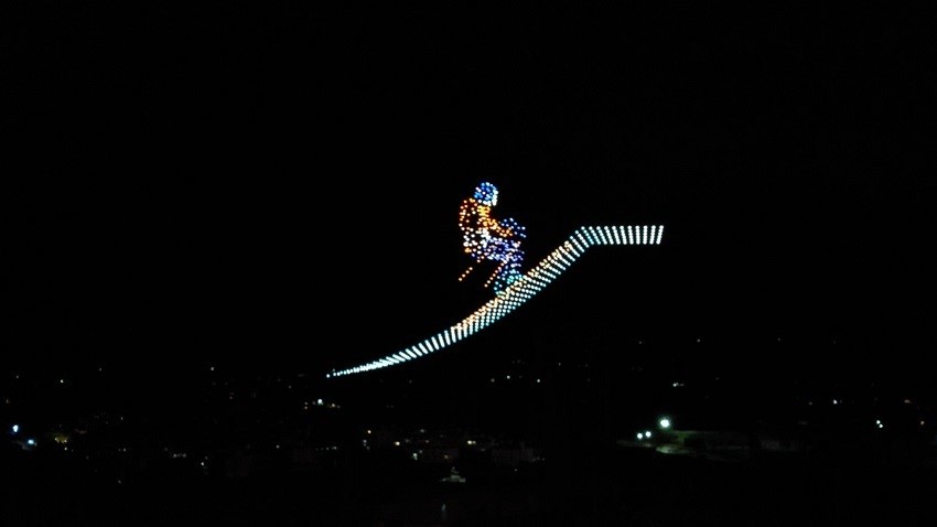 Show de luzes de drones sob o tema "Tributo ao Espírito Olímpico", apresentado pela Efyi Control (Tianjin) Technology Co., Ltd. foi realizado em Wanning, província de Hainan. Foto: Yifei Intelligent Control