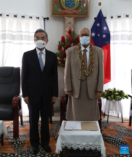 Durante a reuni?o com o conselheiro de Estado e ministro das Rela??es Exteriores da China, Wang Yi, o chefe de Estado de Samoa, Tuimalealiifano Sualauvi Vaaletoa II, disse que os dois países gozam de rela??es fortes e estreitas com resultados frutíferos obtidos na coopera??o mutuamente benéfica, demonstrando a importancia da igualdade e do respeito mútuo no trato das rela??es entre na??es.