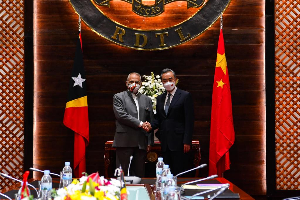 Imediatamente após o surto da COVID-19, a China enviou suprimentos médicos para o Timor-Leste para ajudar na luta contra a pandemia. Equipes médicas chinesas beneficiaram mais de 300 mil pessoas no país. A China também participou ativamente da miss?o de paz das Na??es Unidas no Timor-Leste, disse Wang.