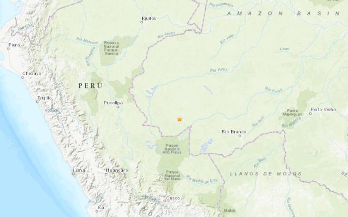 Um terremoto de magnitude 6,5 atingiu a regi?o da fronteira entre o Peru e o Brasil às 8h55 de quarta-feira (8), horário de Beijing, com profundidade de 616,2 quil?metros, segundo informou o Servi?o Geológico dos Estados Unidos (USGS, na sigla em inglês).