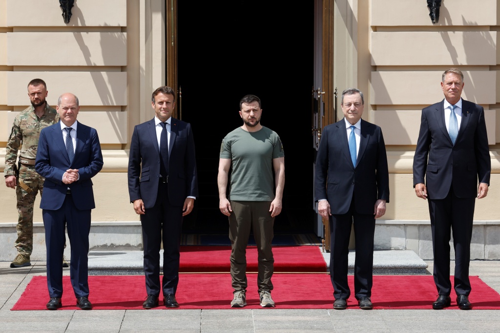 Macron, Scholz, Draghi e Iohannis chegaram a Kiev no início do dia para sua primeira visita desde o início do conflito entre a Rússia e a Ucrania, em 24 de fevereiro.