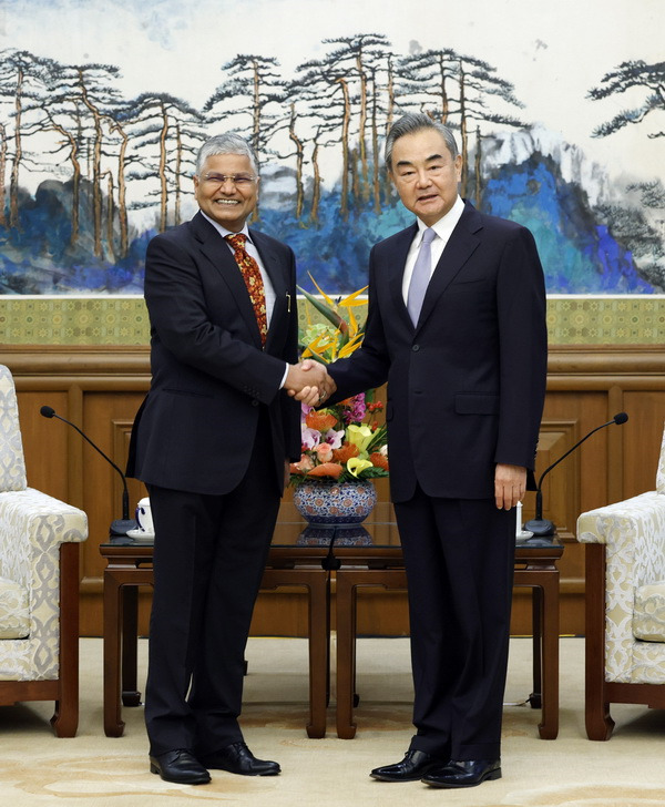 O conselheiro de Estado e ministro das Rela??es Exteriores da China, Wang Yi, se reuniu na capital chinesa com Pradeep Kumar Rawat, novo embaixador da índia na China, na quarta-feira.