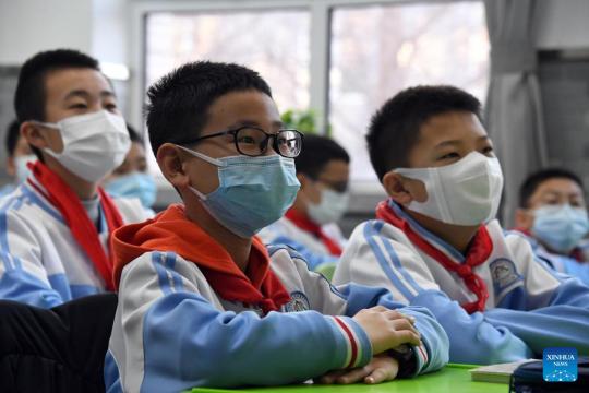 Estudantes do ensino fundamental ao ensino médio em Beijing retornaram suas vidas no campus nesta segunda-feira (27), quando a última onda da epidemia de Covid-19 diminuiu na cidade.