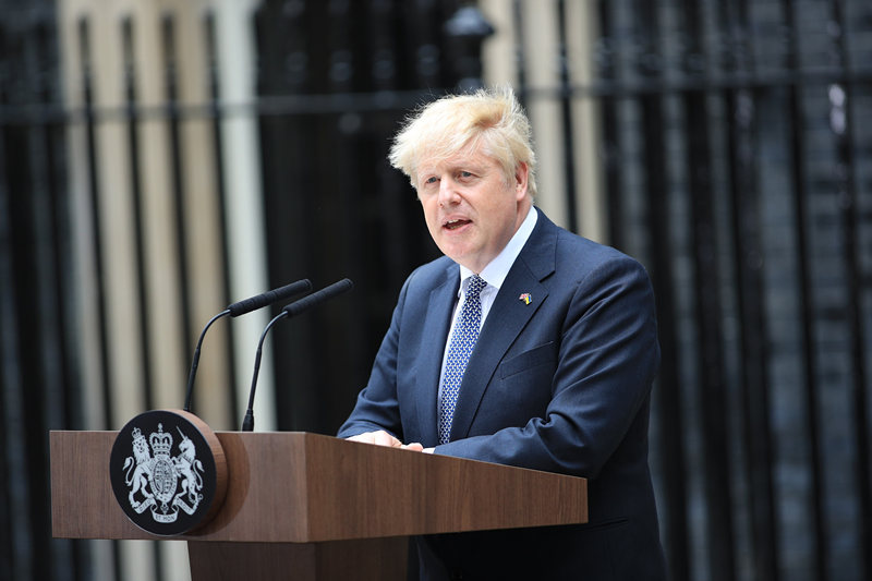 O primeiro-ministro da Gr?-Bretanha, Boris Johnson, faz uma declara??o em frente à Downing Street, no centro de Londres, na quinta-feira. Johnson deixou o cargo de líder do Partido Conservador, após três anos tumultuados no cargo marcados pelo Brexit, Covid-19 e escandalos crescentes. [Foto: JUSTIN TALLIS/AFP]