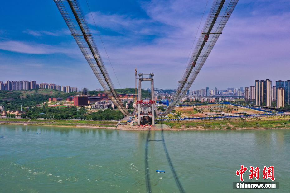 "Reboques suspensos" na constru??o de ponte sobre o Yangtzé no sudoeste da China (3)