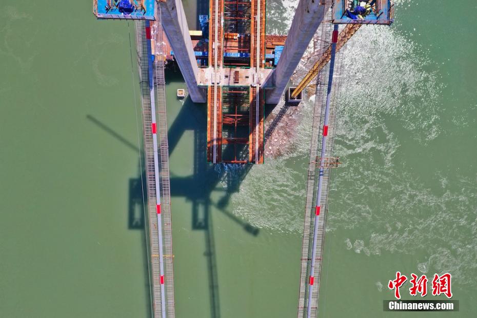"Reboques suspensos" na constru??o de ponte sobre o Yangtzé no sudoeste da China (4)