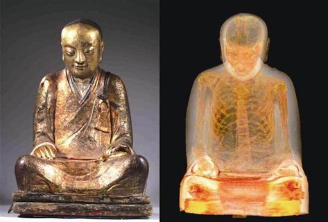 A estátua é de Zhanggong Zushi, um monge da dinastia Song (960-1279) que ganhou fama por curar doen?as e difundir a doutrina budista. Quando morreu aos 37 anos, seu corpo foi mumificado de acordo com seus desejos e colocado dentro de uma estátua.