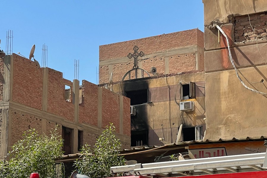 Local do incêndio em uma igreja copta na província de Gizé, Egito, em 14 de agosto de 2022. (Foto: Ahmed Gomaa/Xinhua)