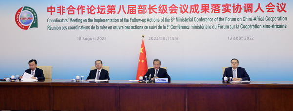 Na reuni?o de coordenadores de quinta-feira sobre a implementa??o dos resultados da 8a conferência ministerial, realizada em formato virtual, Wang disse que a China e a áfrica implementaram conjuntamente os resultados com bom progresso e trouxeram benefícios tangíveis para o povo africano.
