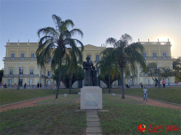 Quatro anos depois de terem sido destruídos pelo fogo, a fachada e o jardim frontal do Palácio Imperial de S?o Cristóv?o, edifício principal do Museu Nacional do Brasil, foram restaurados e concluídos, em 2 de setembro. (Foto: Chen Yiming, Diário do Povo Online)