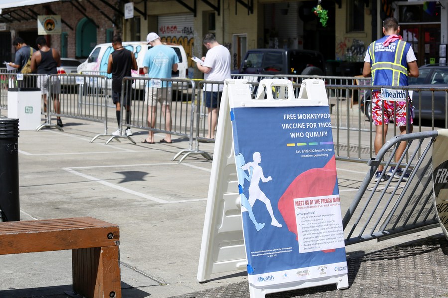 Pessoas fazem fila para vacina??o contra varíola em Nova Orleans, Estados Unidos, em 13 de agosto de 2022.