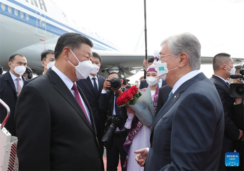 Quando o presidente chinês chegou ao Aeroporto Internacional Nursultan Nazarbayev na quarta-feira à tarde, ele foi calorosamente recebido por Tokayev e um grupo de altos funcionários, incluindo o vice-primeiro-ministro cazaque e ministro das Rela??es Exteriores, Mukhtar Tileuberdi, e o prefeito de Nur-Sultan, Altai Kulginov.