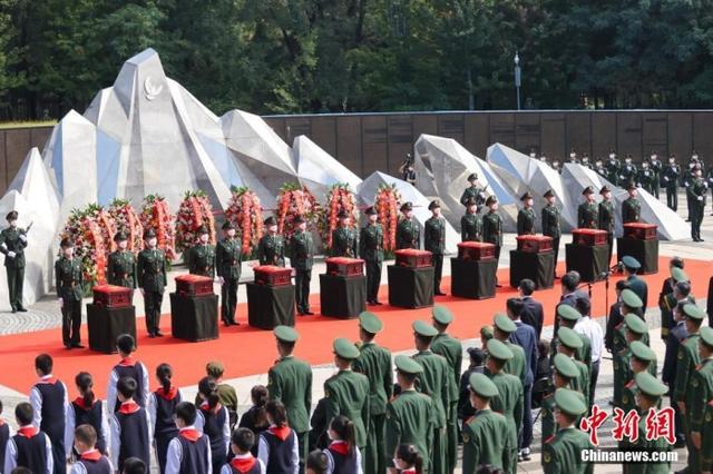 A cerim?nia de sepultamento come?ou no cemitério dos Voluntários do Povo Chinês (CPV, siglas em inglês) mártires em Shenyang às 10h. Guardas de honra carregando os caix?es dos mártires entraram no cemitério escoltados por soldados do Exército Popular de Liberta??o da China à medida que o hino nacional estava sendo tocado.