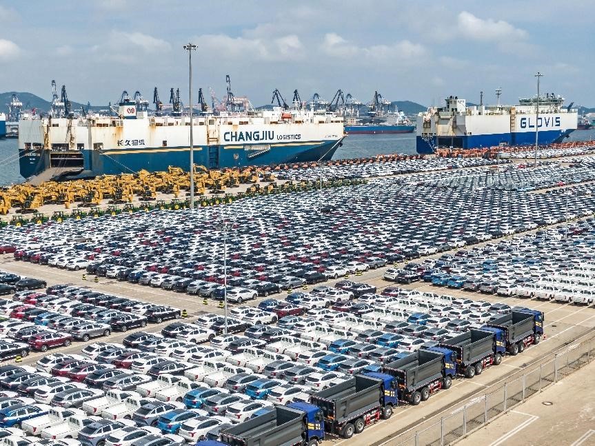 Veículos aguardam embarque de exporta??o no porto de Yantai, Shandong. Foto: Zhang Chao, Diário do Povo Online