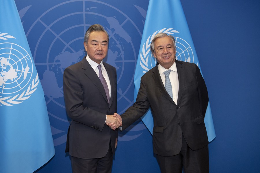 O conselheiro de Estado e ministro das Rela??es Exteriores da China, Wang Yi, reuniu-se na sexta-feira com o secretário-geral das Na??es Unidas (ONU), António Guterres, por ocasi?o da 77a sess?o da Assembleia Geral da ONU.