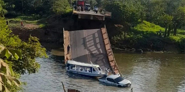 A causa do desabamento ainda é desconhecida, mas testemunhas disseram que havia caminh?es entre os 12 veículos que passavam pela ponte quando ela caiu no rio, que tem uma profundidade de 20 metros no local.