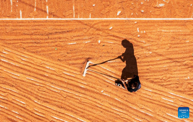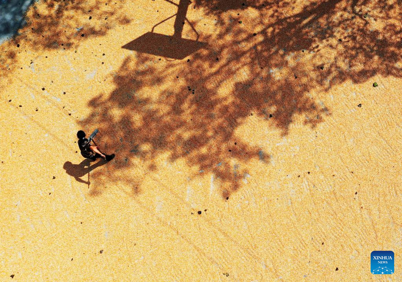 A foto aérea capturada em 5 de outubro mostra um alde?o secando o sorgo na aldeia de Gantang, cidade de Qianxi, na província de Guizhou, sudoeste da China.