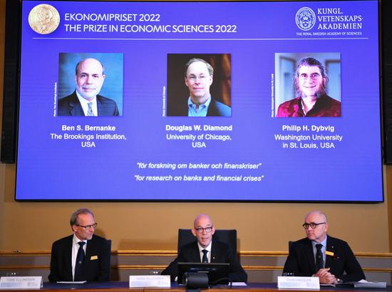 A Real Academia Sueca de Ciências decidiu na segunda-feira (10) conceder o Prêmio Sveriges Riksbank 2022 em Ciências Econ?micas em Memória de Alfred Nobel a Ben S. Bernanke, Douglas W. Diamond e Philip H. Dybvig "por pesquisas sobre bancos e crises financeiras".
