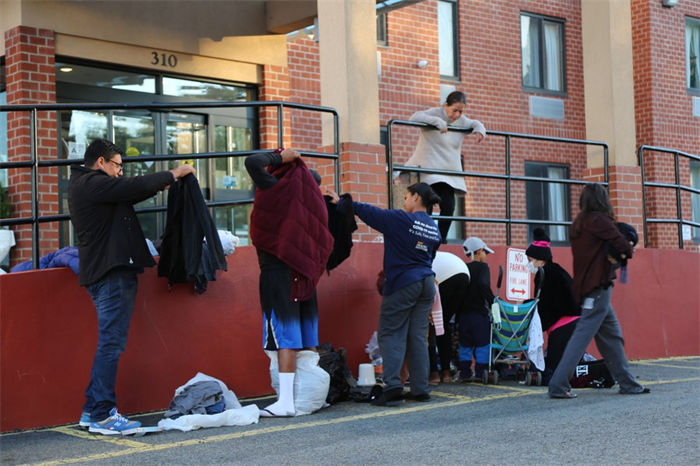 Ovando e outros migrantes finalmente pegaram algumas roupas, que foram doadas por alguns nova-iorquinos no hotel.