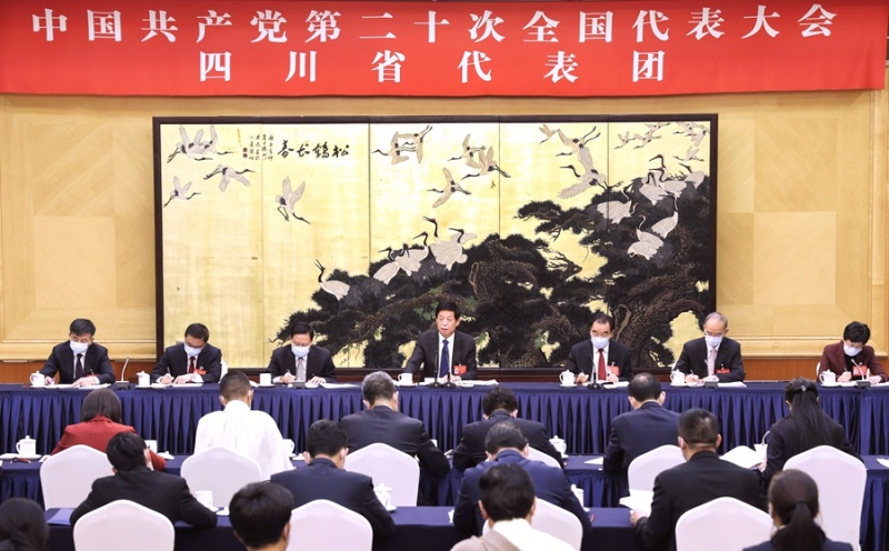 Li Zhanshu participou na segunda-feira de uma discuss?o em grupo com os delegados da Província de Sichuan, no sudoeste da China, que est?o participando do 20o Congresso Nacional do Partido Comunista da China (PCCh).