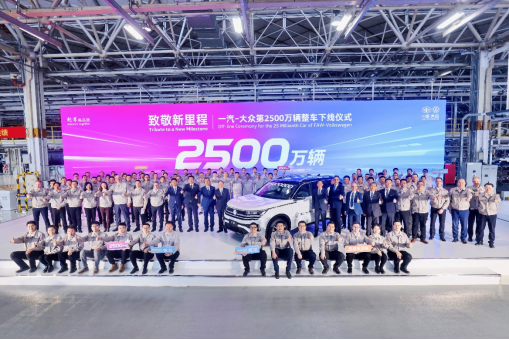 A FAW-Volkswagen Automobile Co., Ltd., uma joint venture de automóveis de passageiros entre a China FAW Group Co., Ltd. e a Volkswagen AG, superou a marca dos 25 milh?es de veículos a deixarem a linha de produ??o na segunda-feira, informou a empresa.