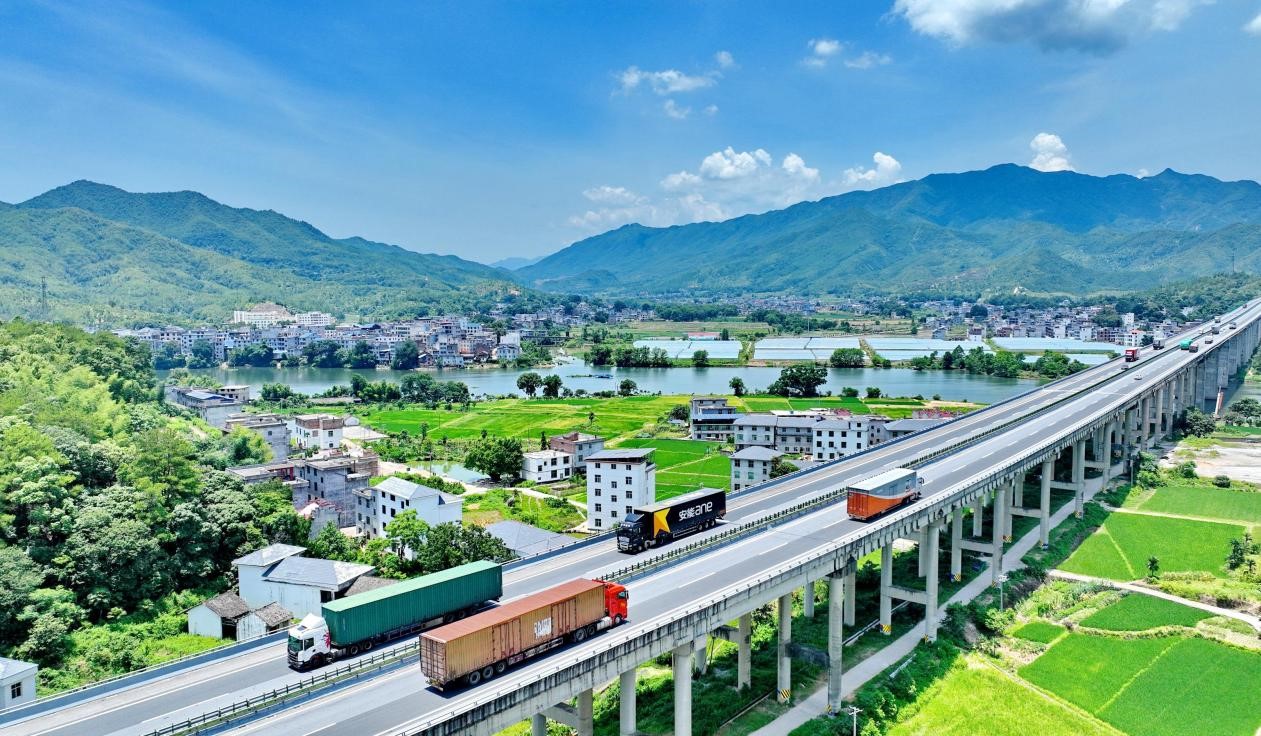 Veículos circulam na ponte Baie Gongshui, na cidade de Ganzhou, província de Jiangxi. A ponte faz uma parte da Via expressa G76 Xiamen-Chengdu. Foto: Zhu Haipeng, Diário do Povo Online