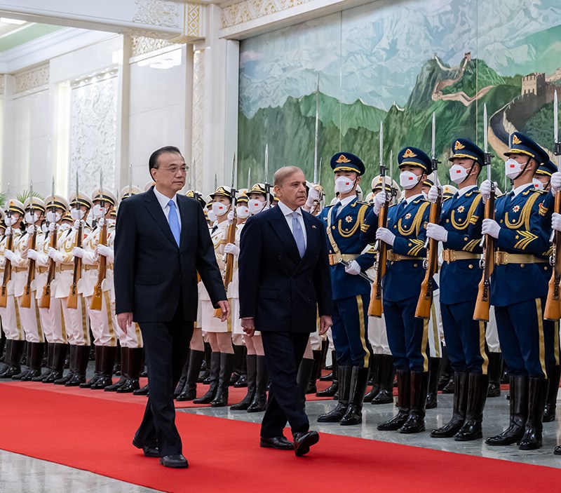 O primeiro-ministro chinês, Li Keqiang, conversou com seu homólogo paquistanês, Muhammad Shehbaz Sharif, em Beijing na quarta-feira.