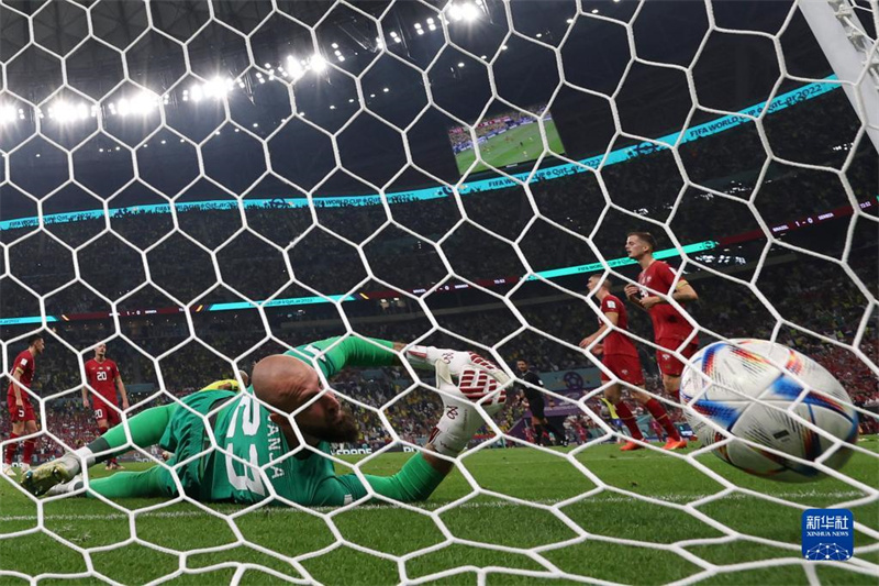 O goleiro sérvio Vanja Milinkovic-Savic n?o consegue defender o chute do atacante brasileiro Richarlison. (Foto: Xu Zijian/Xinhua)